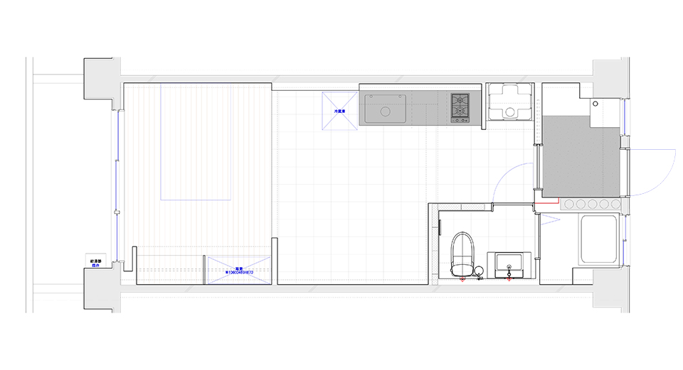 1DKのマンションをStudioタイプにするリノベーションを行った。 築50年を超えるマンションではあるがすでに一度リフォームが行われていた為、浴室に関しては今回の工事では行わずにそれ以外に予算をかけてリノベーションを行った。 当初はご本人が仕事用として使いつつ将来的にはお子さんが一人暮らしをする時に譲られることを想定し細かく間仕切ることをせず1つの空間としてまとめた。玄関を開けてすぐにあったキッチンを居室側に移動させることで玄関土間のスペースを拡充し、共用廊下側からワンクッションを置き室内が丸見えにならないように心がけた。また玄関側は幹線道路に面しているがその騒音を軽減することにも役立っている。 ステンレス天板だけのキッチンは造作で設け、下部の収納についてはお客様にご用意いただき最低限のシンプルなものとしている。 |